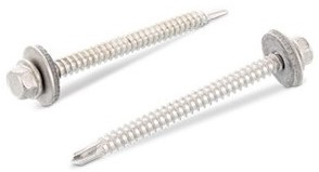 Boorschroef zeskant met afdichtschijf 16mm 5,5x22. Boorschroef met zeskant flenskop en afdichtschijf(EPDM). Uitgevoerd in materiaal RVS-A2 (AISI-304). De lengte van de schroef is gemeten onder de kop. Let op! De RVS-A2 boorschroef is alleen geschikt voor zachte metalen, o.a. aluminium, lichte bevestigingen in kunststof. Deze schroef is uitermate geschikt voor het gebruik in vochtige ruimtes.